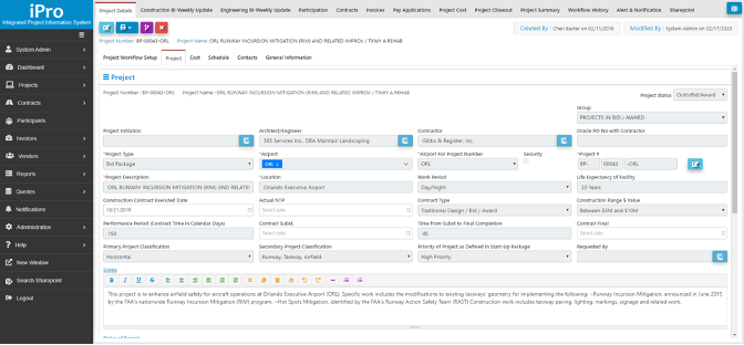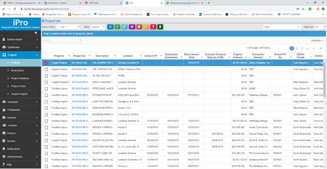The Greater Orlando Aviation Authority (GOAA) operates the Orlando International Airport (MCO) in Orlando, Florida. In an effort to provide simple, secure, and centralized project controls management for their AEC projects, GOAA elected to replace their E&C-IS database (MS Access) that was used for over 25 years. EPIC was selected to design and deploy the enterprise web-based replacement solution named iPro, which is short for Integrated Project Information Application.